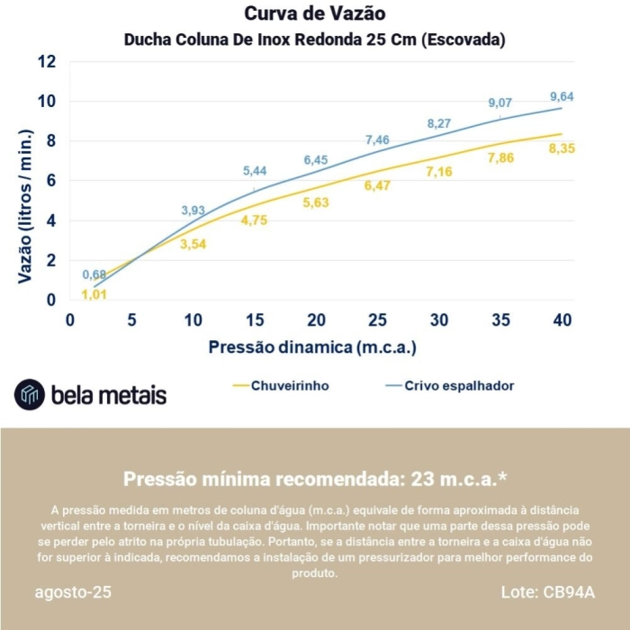 Ducha Coluna de Inox Redonda 25 cm (Escovada) Código: DC05