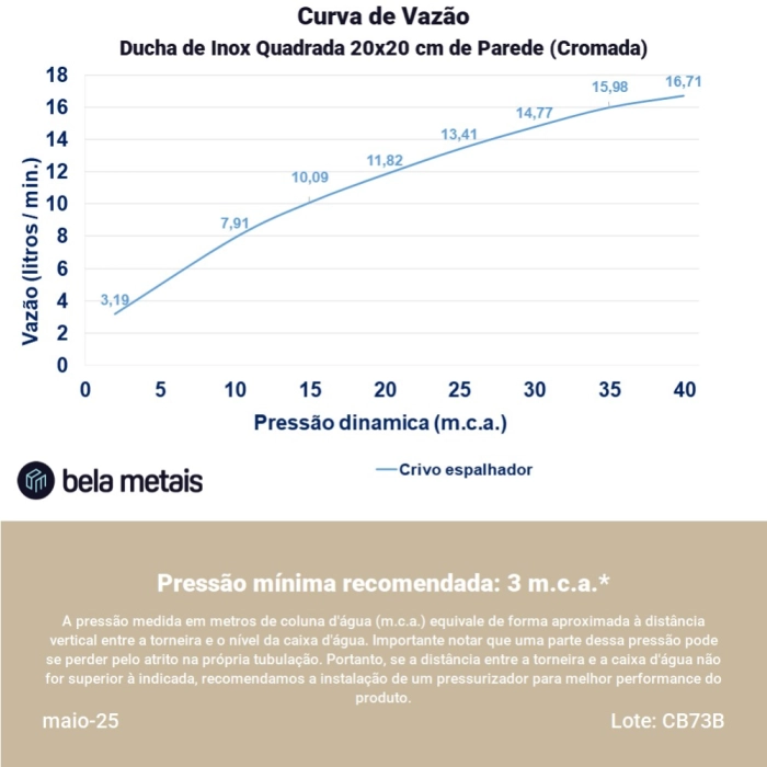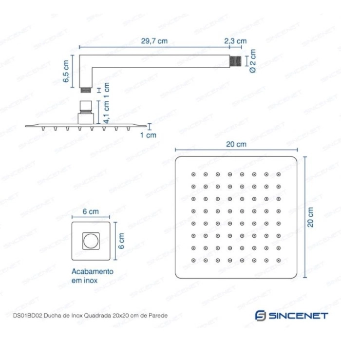 Ducha de Inox Quadrada 20x20 cm de Parede (Cromada)