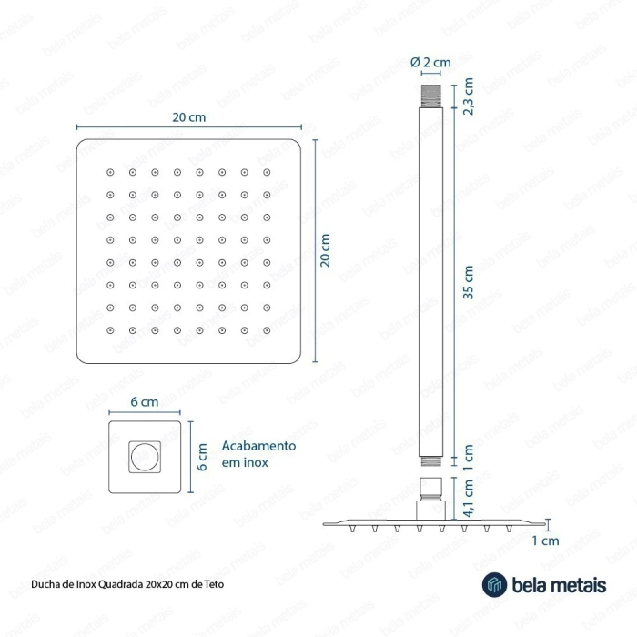 Ducha de Inox Quadrada 20x20 cm de Teto (Dourada)