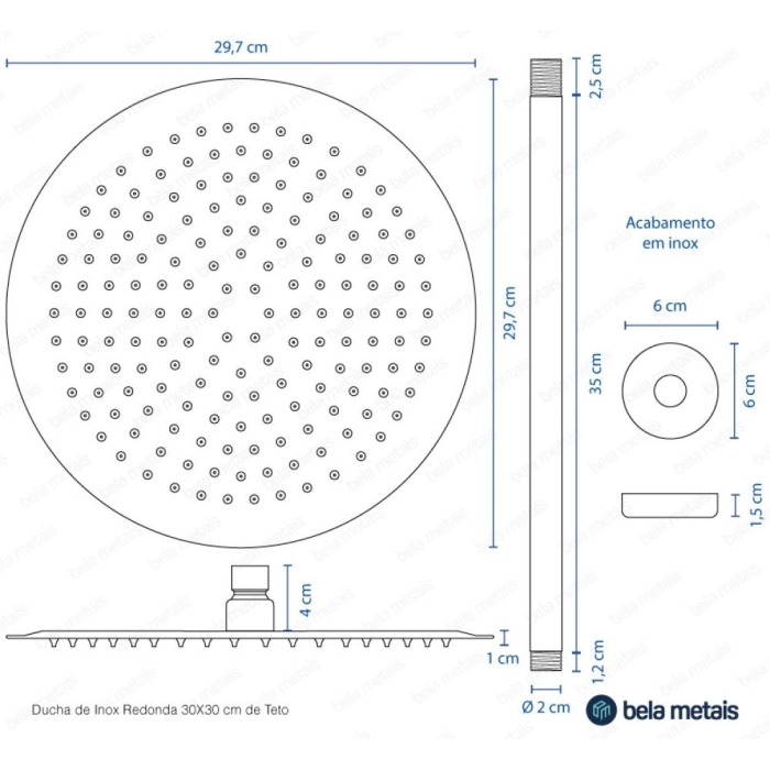 Ducha de Inox Redonda 30 cm de Teto (Rosé Gold Fosca)