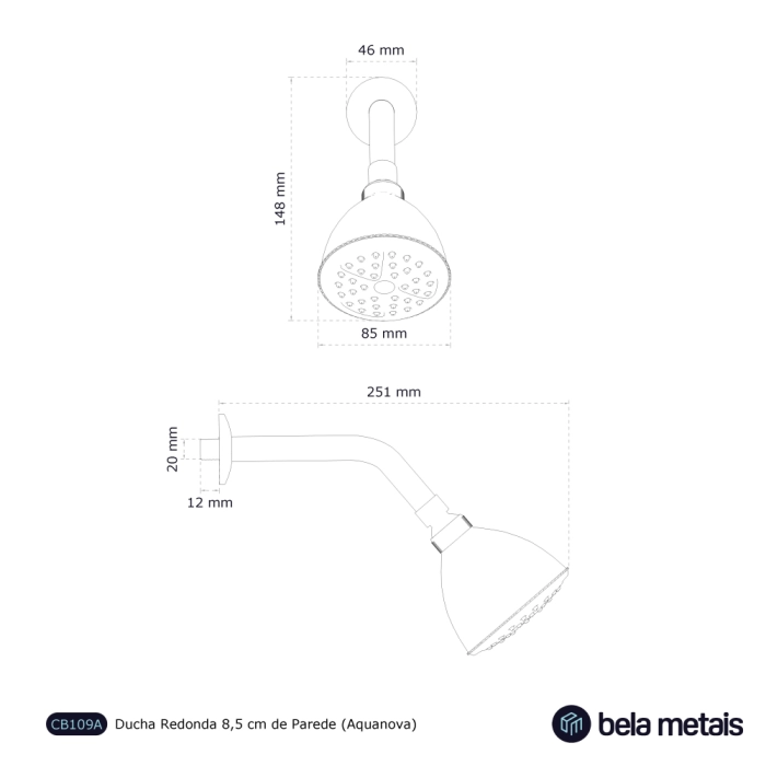 Ducha Redonda 8,5 cm de Parede (Aquanova Cromada)