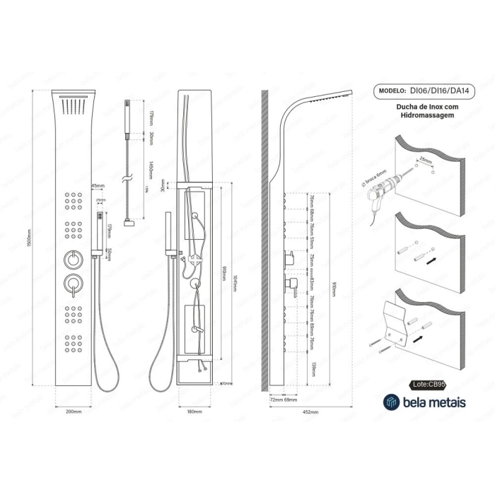 Ducha Vertical com Hidro (Alumínio Escovada)