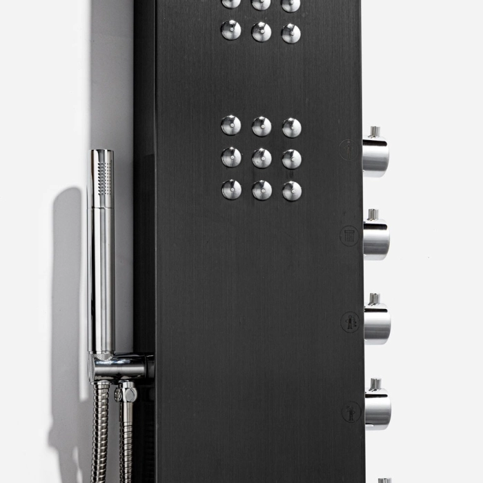Ducha Vertical com Hidro Cascata e Led Square (Inox Preta Fosca)