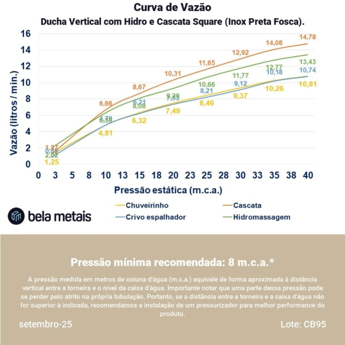 Ducha Vertical com Hidro e Cascata Square (Inox Preta Fosca)