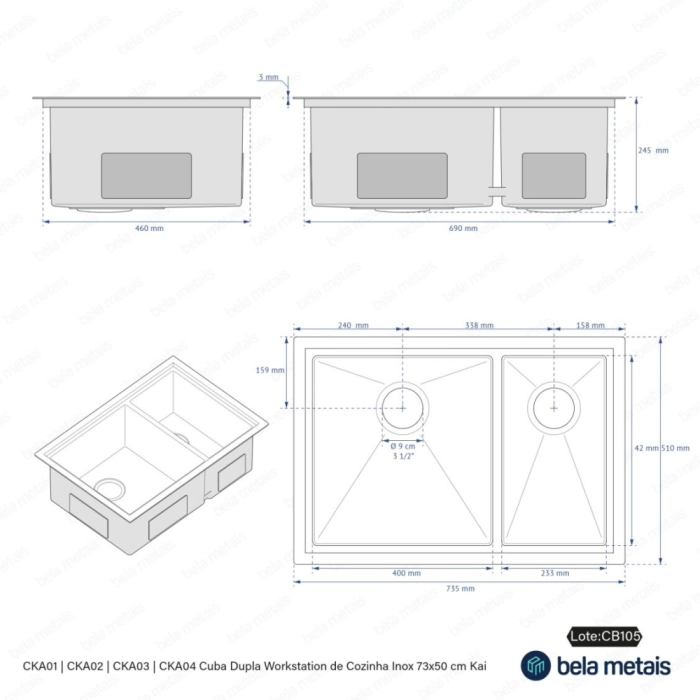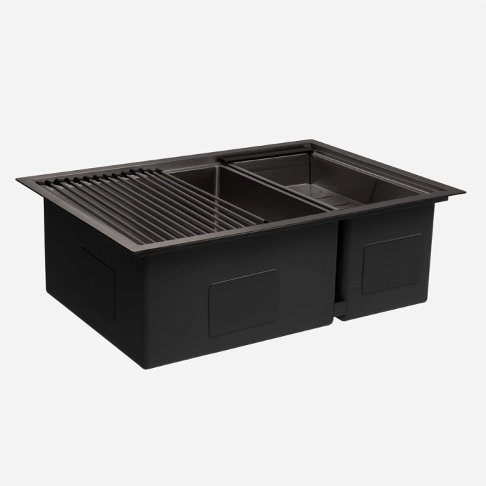 Kit Cuba Dupla Workstation Inox com Acessórios (Kai Grafite Fosca)