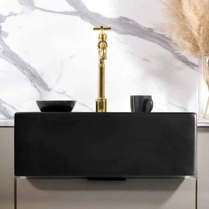 Kit Cuba Fazenda Louça com Acessórios Dourado Fosco (Amalfi Preta)