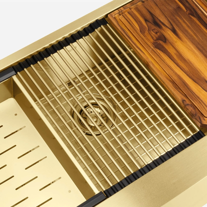 Kit Cuba Fazenda Workstation Inox com Acessórios (Narita Ouro Fosca)
