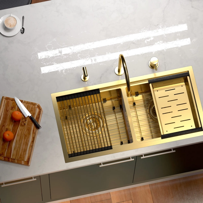Kit Cuba Workstation Inox com Acessórios (Kobe Dourada Fosca)