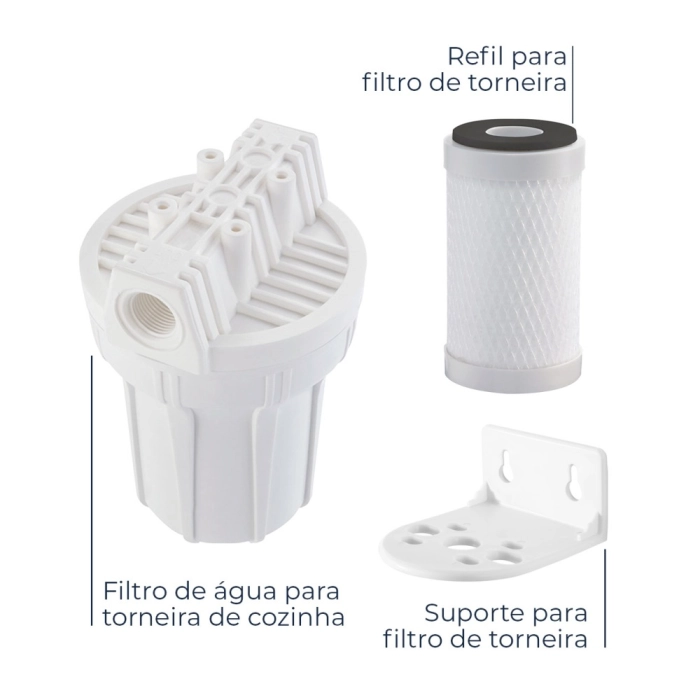 Kit Filtro Clor 5" para Torneira de Cozinha (Filtro + Refil + Suporte)