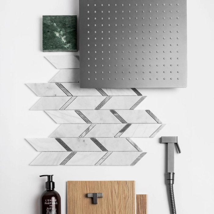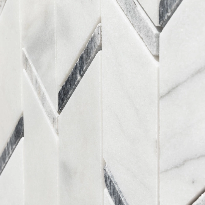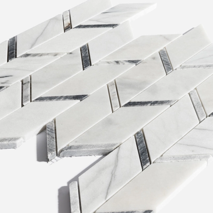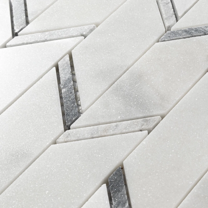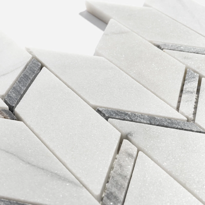 Pastilhas de Pedra Chevron (Mármores Piguês e Grey)