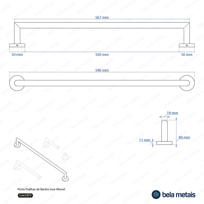 Porta Toalha de Banho Inox (Monet Dourado)