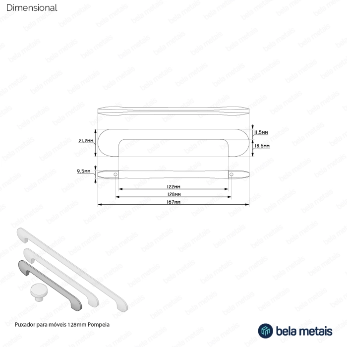 Puxador para Móvel Alça Sobrepor 128 mm Zamac (Pompeia Dourado)