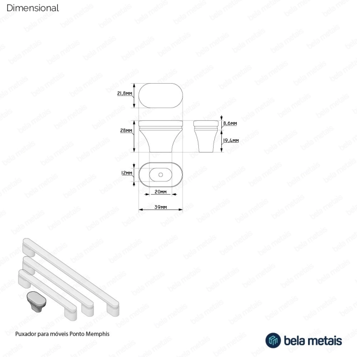 Puxador para Móvel Ponto Zamac (Memphis Escovado)