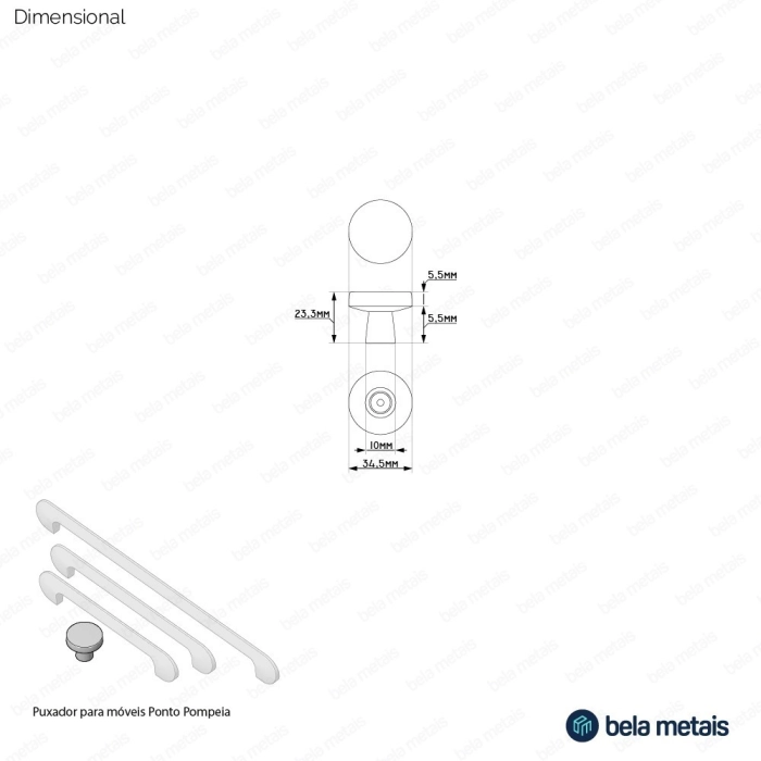 Puxador para Móvel Ponto Zamac (Pompeia Dourado)