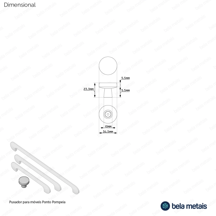Puxador para Móvel Ponto Zamac (Pompeia Escovado) - Outlet