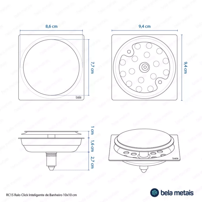 Ralo Click Inteligente de Banheiro 15x15 cm (Inox Rosé Gold) - Outlet