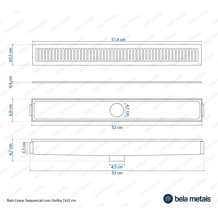 Ralo Linear Sequencial com Grelha 7x52 cm (Bege)