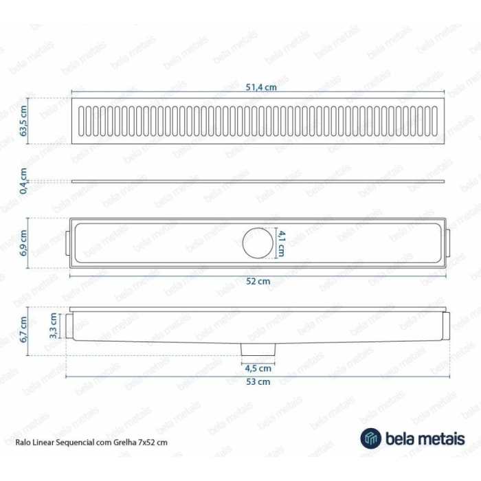 • Ralo Linear Sequencial com Grelha 7x52 cm (Cromado)