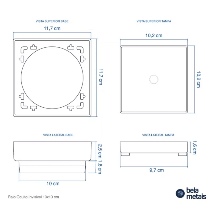 Ralo Oculto Invisível 10x10 cm com Tela (Platina)