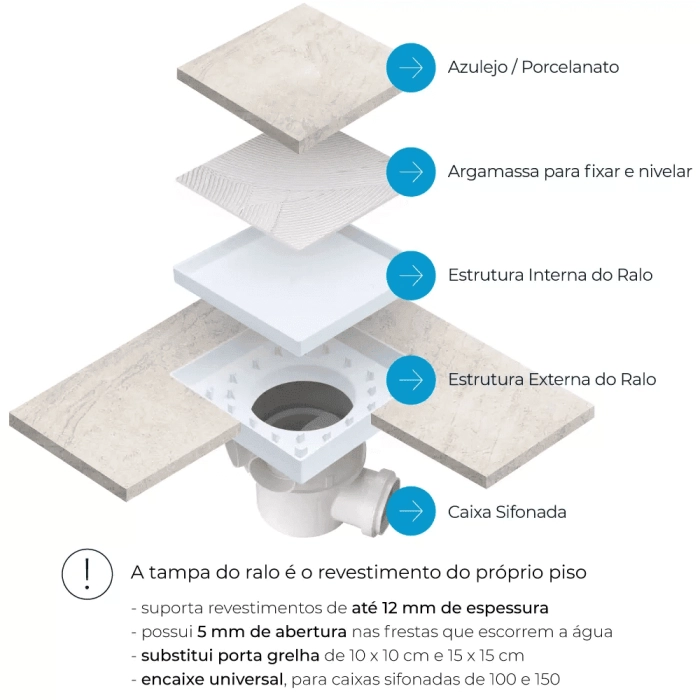 Ralo Oculto Invisível com Encaixe Universal (Branco)