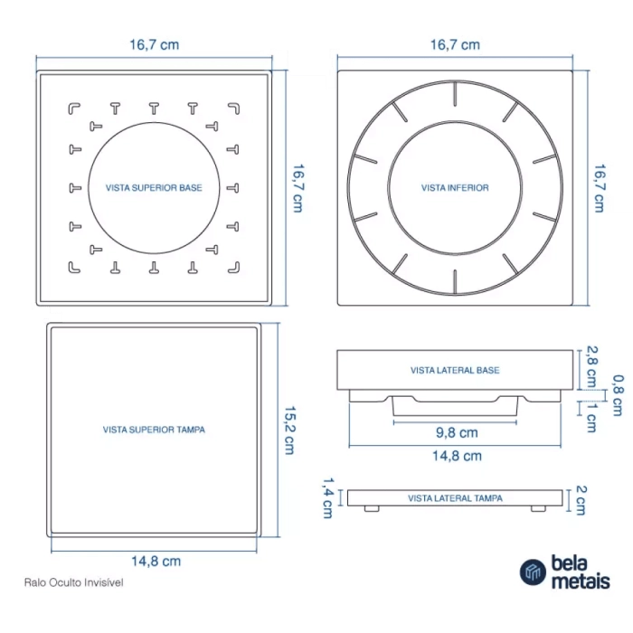 Ralo Oculto Invisível com Encaixe Universal (Preto)