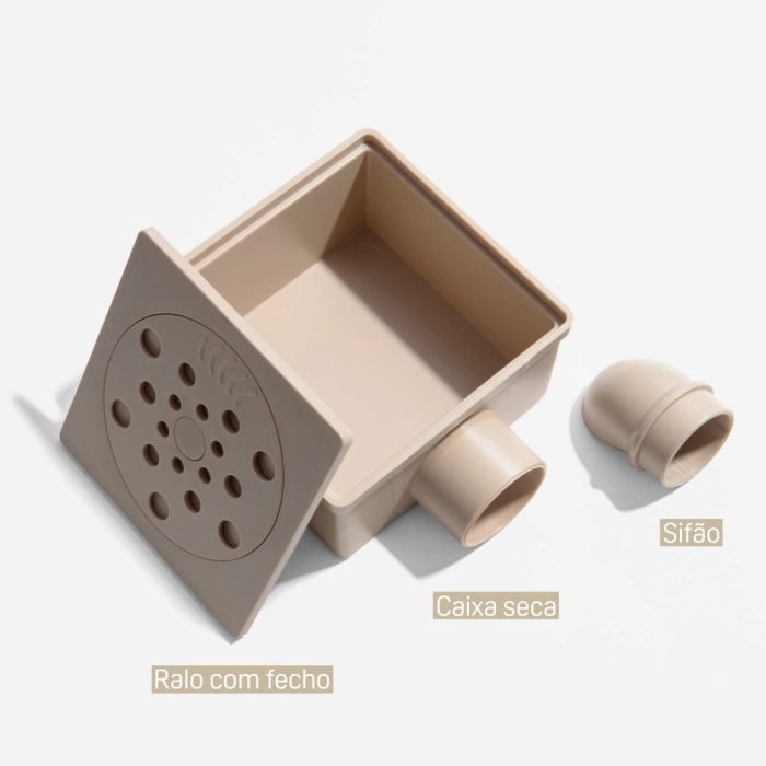 Ralo Seco Sifonado com Fecho 10x10 cm (Bege)