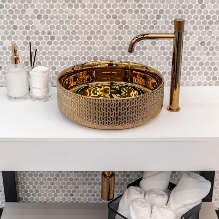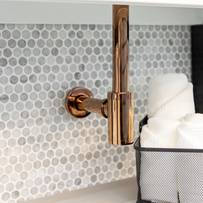 Sifão Metálico com Copo para Banheiro (Line Rosé Gold)