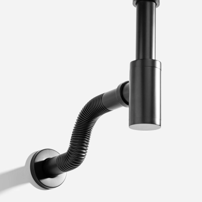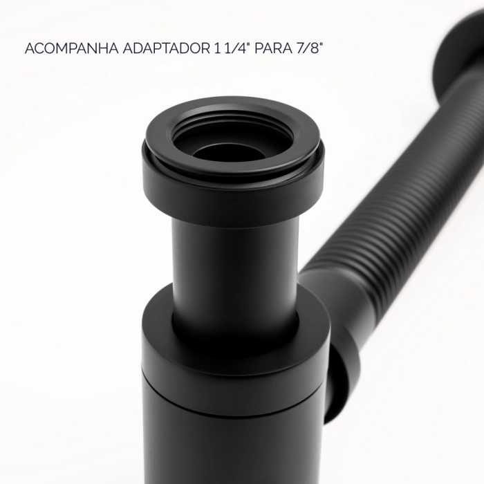 Sifão Metálico Flexível com Copo para Banheiro (Line Preto Fosco)
