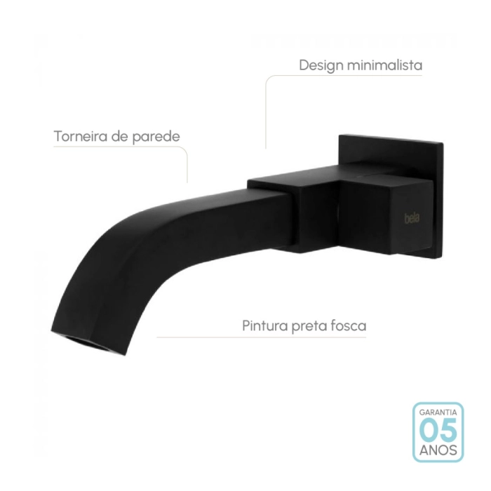 Torneira de Parede para Banheiro (Tay Preta Fosca)