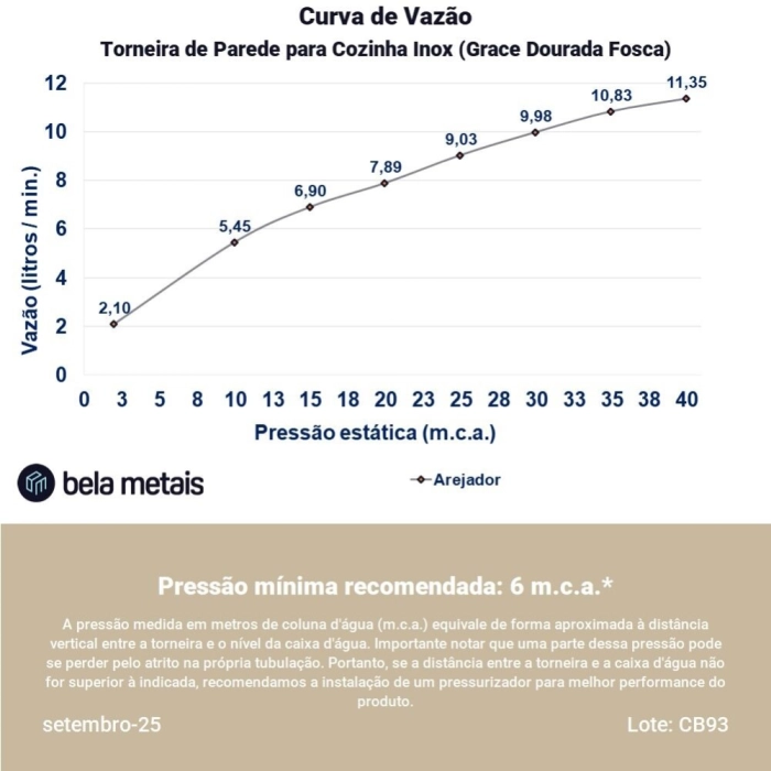 Torneira de Parede para Cozinha Inox (Grace Ouro Fosca)