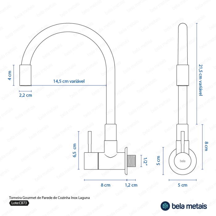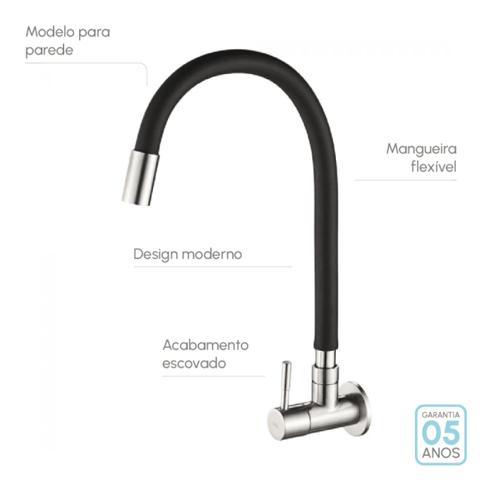Torneira Gourmet de Parede de Cozinha Inox (Laguna Preta Fosca)