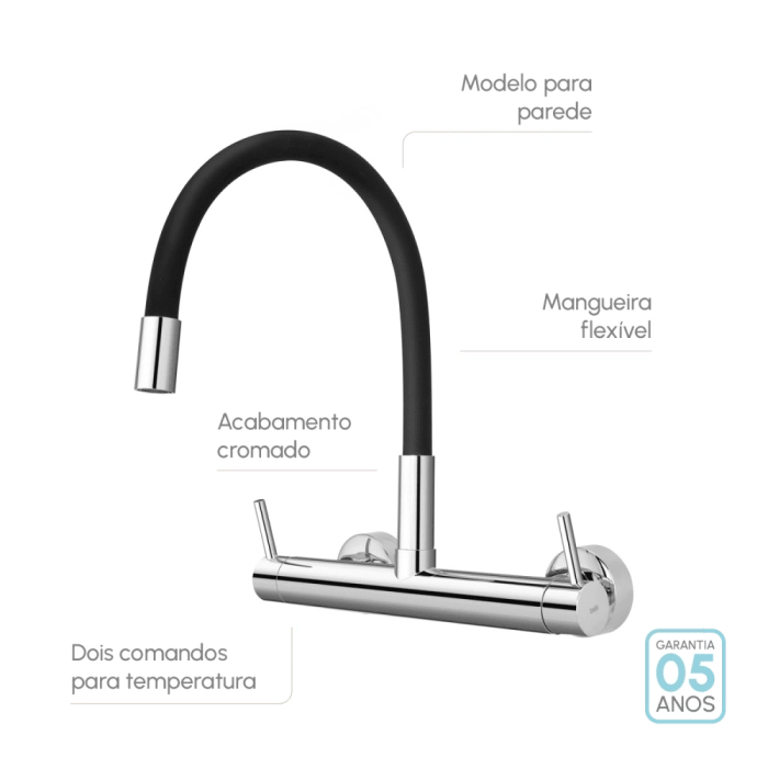 Torneira Misturador Gourmet de Parede de Cozinha (Viana Preta)