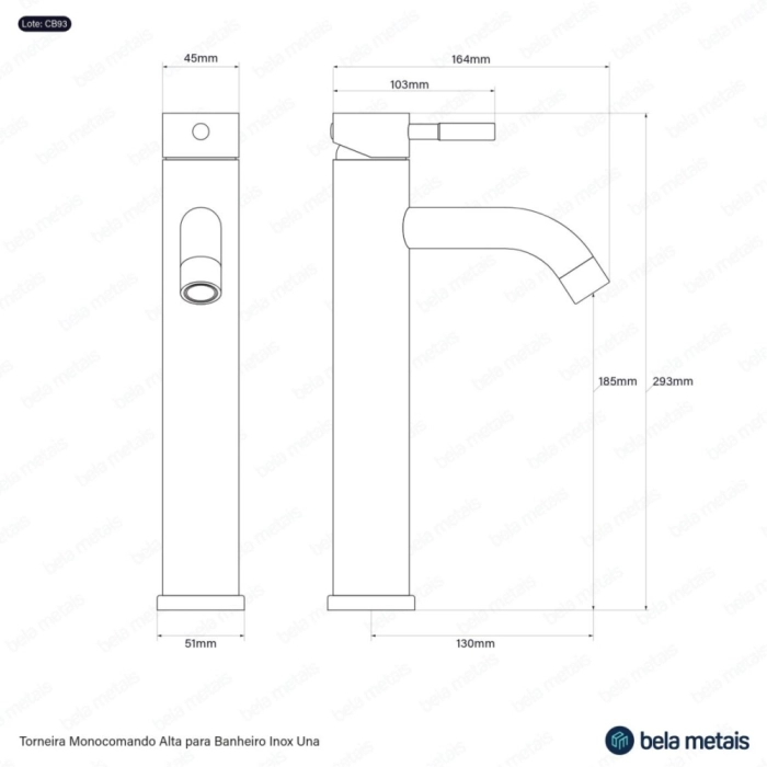 Torneira Monocomando Alta para Banheiro Inox (Una Preta Fosca)