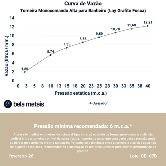 Torneira Monocomando Alta para Banheiro (Lay Grafite Fosca)