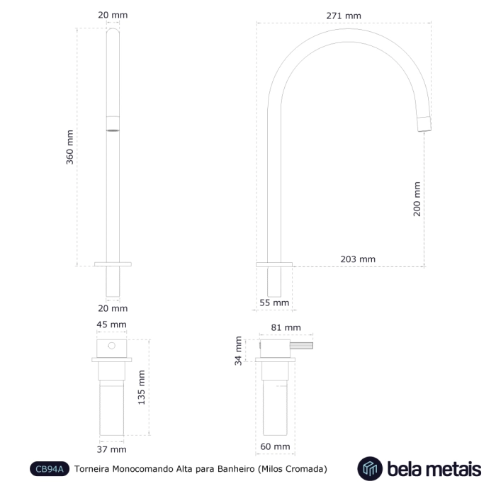 Torneira Monocomando Alta para Banheiro (Milos Dourada)