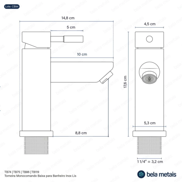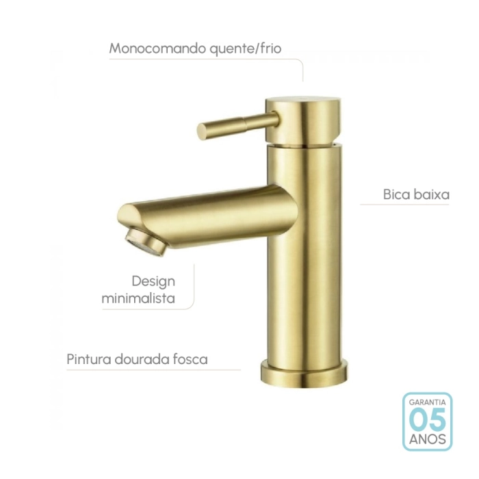 Torneira Monocomando Baixa para Banheiro Inox (Lis Dourada Fosca)