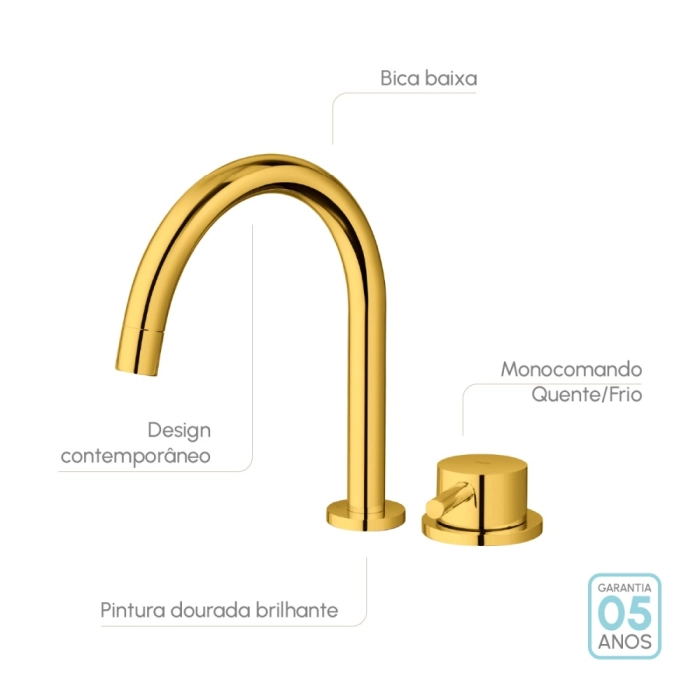 Torneira Monocomando Baixa para Banheiro (Milos Dourada)