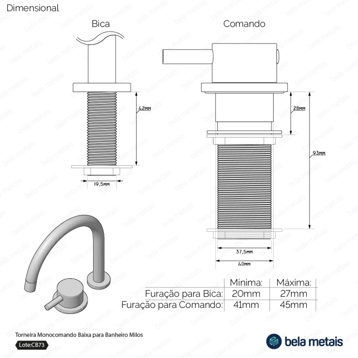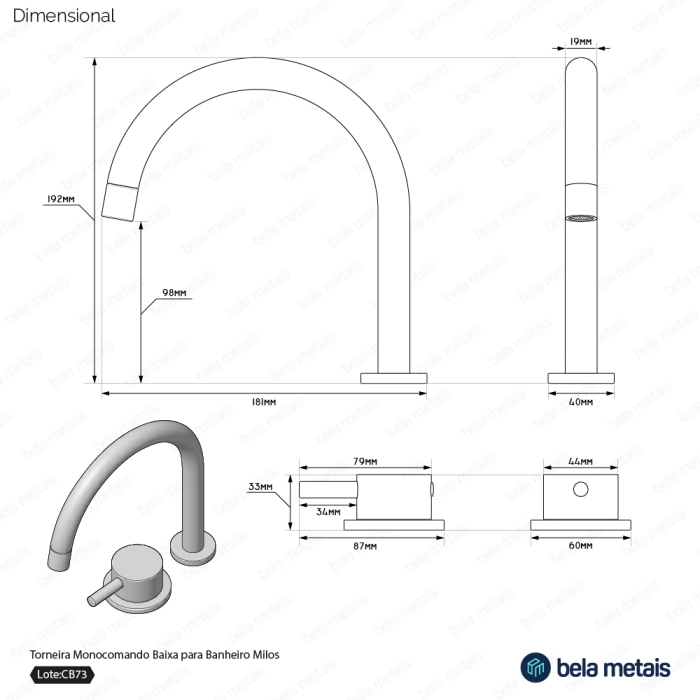 Torneira Monocomando Baixa para Banheiro (Milos Preta Fosca)