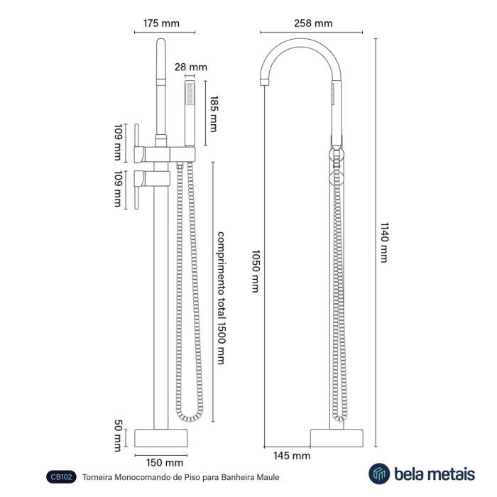 Torneira Monocomando de Piso para Banheira (Maule Preta Fosca)