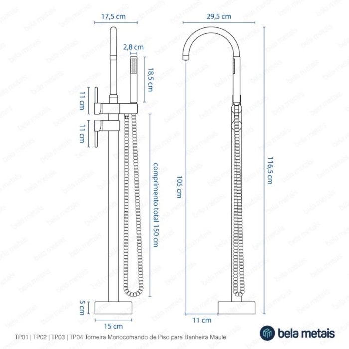 Torneira Monocomando de Piso para Banheira (Maule Rosé Gold Fosca)