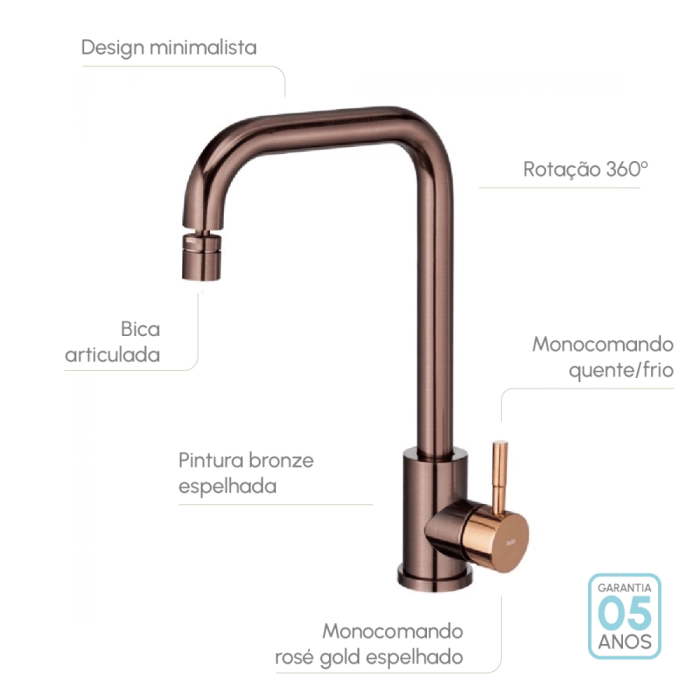 Torneira Monocomando Giratória de Cozinha Inox (Malta Bronze)