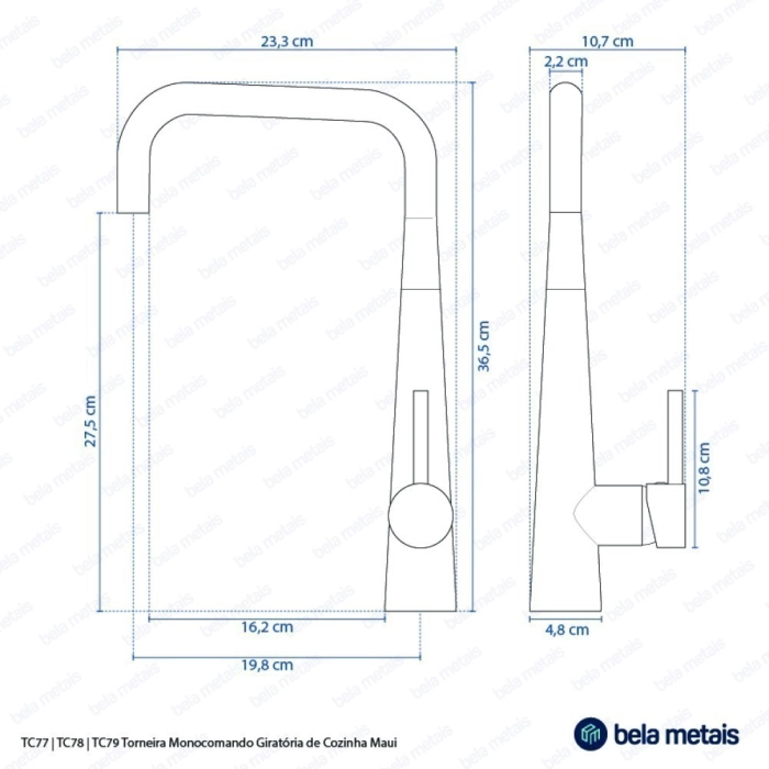 Torneira Monocomando Giratória de Cozinha (Maui Dourada)