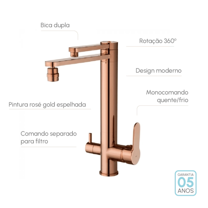 Torneira Monocomando Giratória de Filtro (Ibiza Rosé Gold)