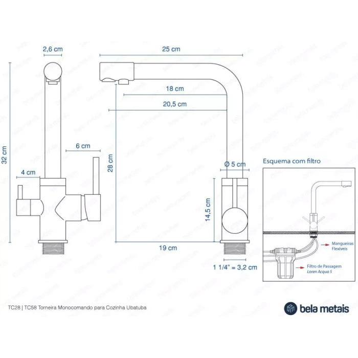 Kit Filtro Clor 5" para Torneira de Cozinha (Filtro + Refil + Suporte)