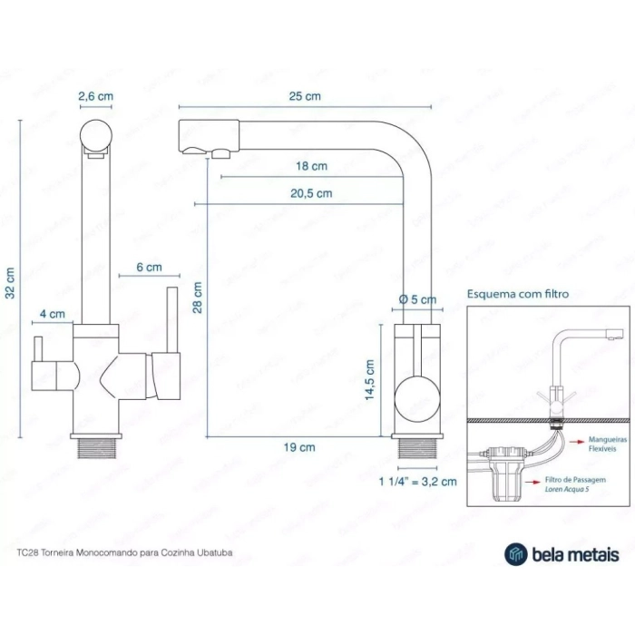 Kit Filtro Clor 5" para Torneira de Cozinha (Filtro + Refil + Suporte)