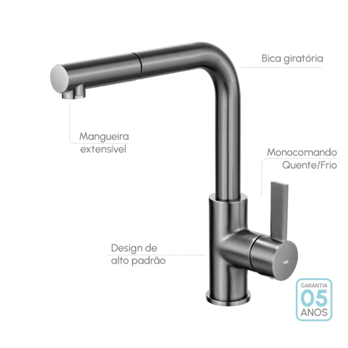 Torneira Monocomando Gourmet de Cozinha (Chipre Grafite Fosca)
