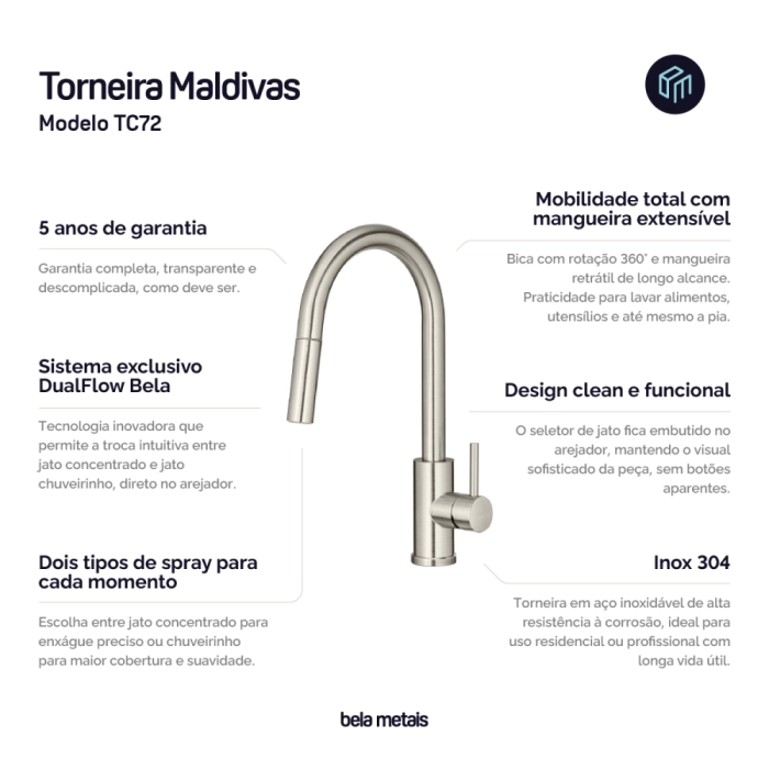 Torneira Monocomando Gourmet de Cozinha Inox (Maldivas Escovada)