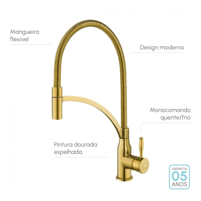 Torneira Monocomando Gourmet de Cozinha (Riviera Dourada)