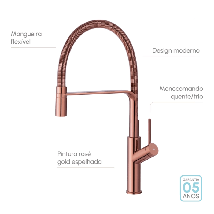 Torneira Monocomando Gourmet de Cozinha (Venice Rosé Gold)
