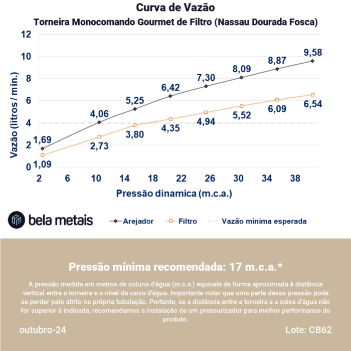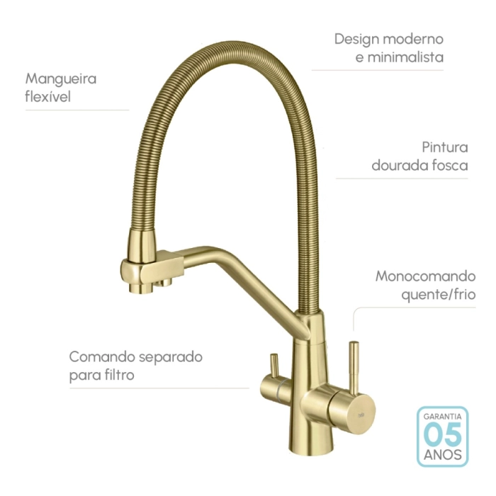 Torneira Monocomando Gourmet de Filtro (Nassau Dourada Fosca)
